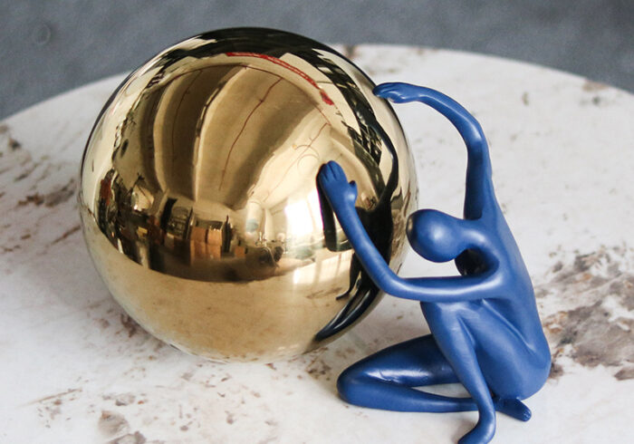 The “Dancing Figures” sculpture is a stunning representation of movement and grace. Crafted from high-quality stainless steel, this piece features two figures in a dynamic pose, capturing the essence of dance. Its reflective surface adds a unique visual element, allowing it to change with the surrounding light.