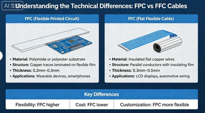 - Newhaven Display – FFC vs FPC: Understanding Flexible Cable Technologies [1, 3, 6]