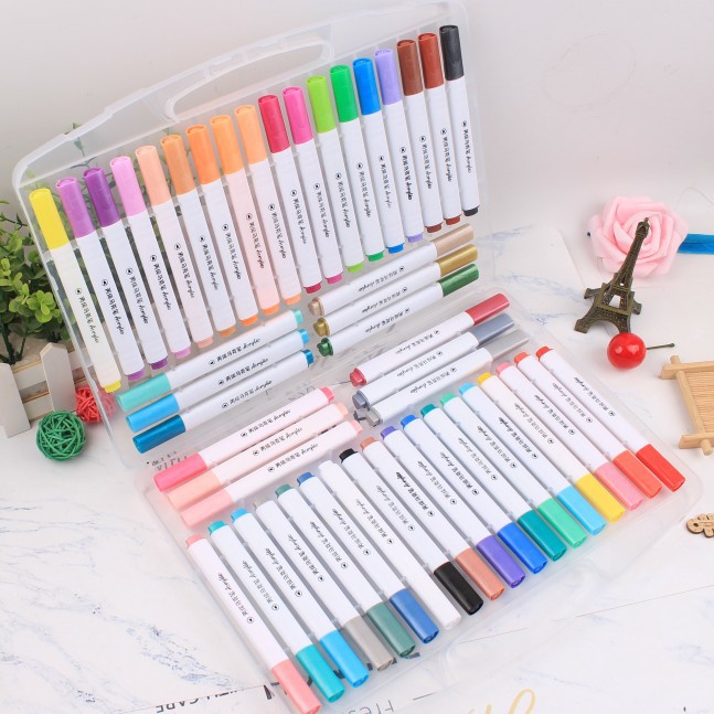 Water color pens, also known as watercolor brush pens or markers, are markers filled with water-soluble ink. They typically feature a flexible brush tip that allows for a range of strokes, from fine lines to broad washes. When used with water, these pens can create effects similar to traditional watercolor paints, but with the added convenience of not requiring separate brushes or extensive cleanup. The ink inside the pens is usually non-toxic and dries quickly, making them safe and easy to use for artists of all levels.